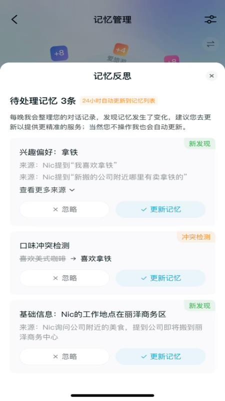 5、查看所有记忆反思,知道所有记忆详情,方便用户能及时更新;