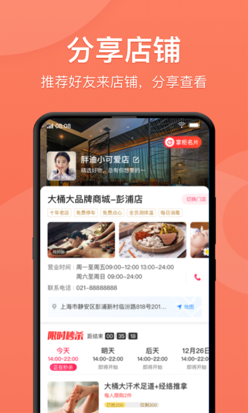可在线浏览店铺,知道店铺信息,便于日常消费,还能推荐好友一起查看消费;