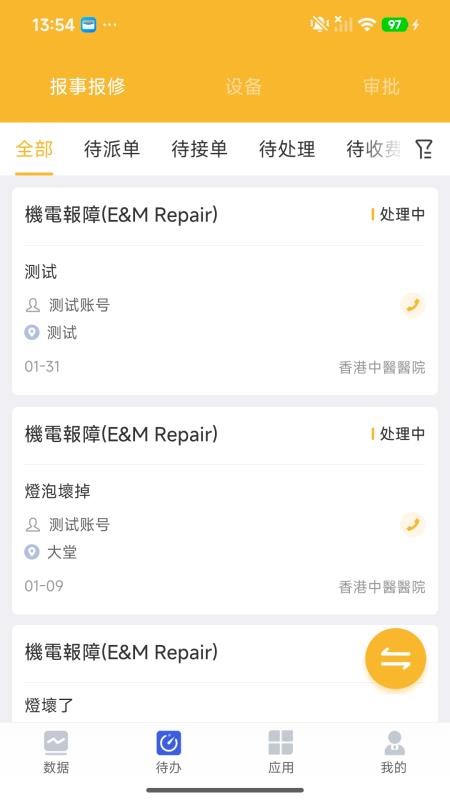 3、进入待办页面,就能查看所有待派单、待接单的订单,并及时解决;