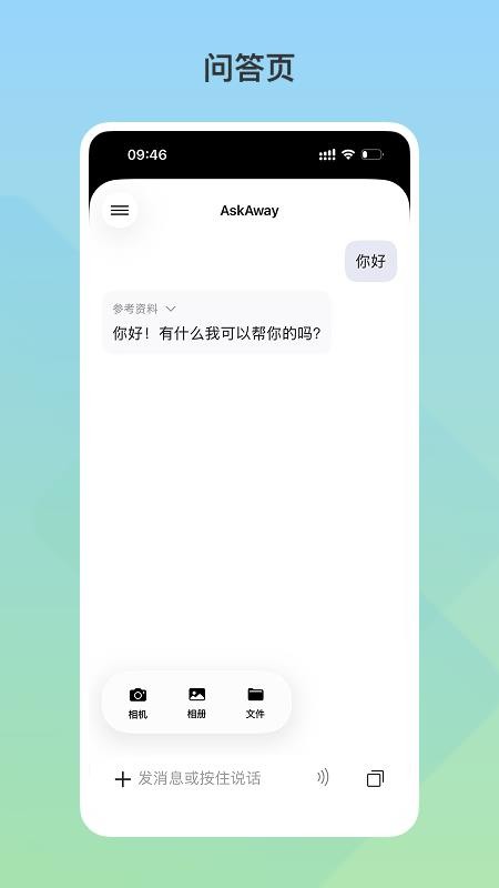 根据自己的问答需求,可自由选择对应的问答类型,满足文件、图片和文字咨询;