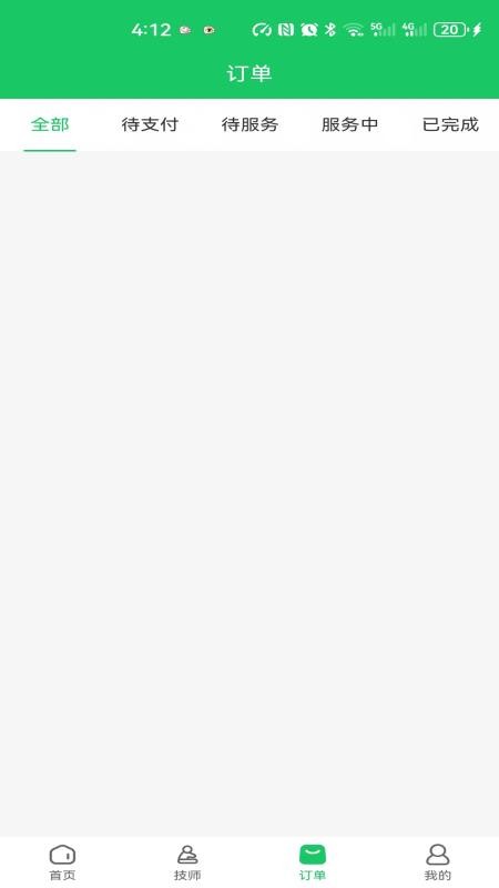 3、进入到订单页面中可以对订单的待支付、待服务、服务中等各种流程状态进行查看了解;