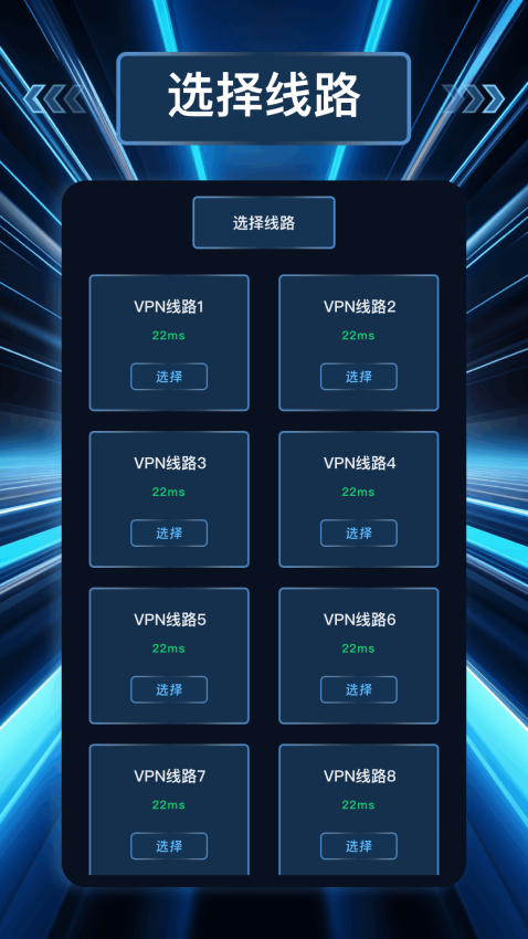 2、一键点击选择线路,可立即实现提速,即刻体验高速上网服务;