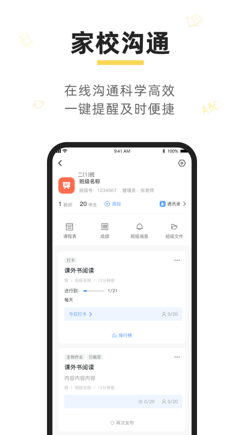 简单便捷的家校沟通模式,轻轻松松就能在线沟通,享受更加科学的家校服务;