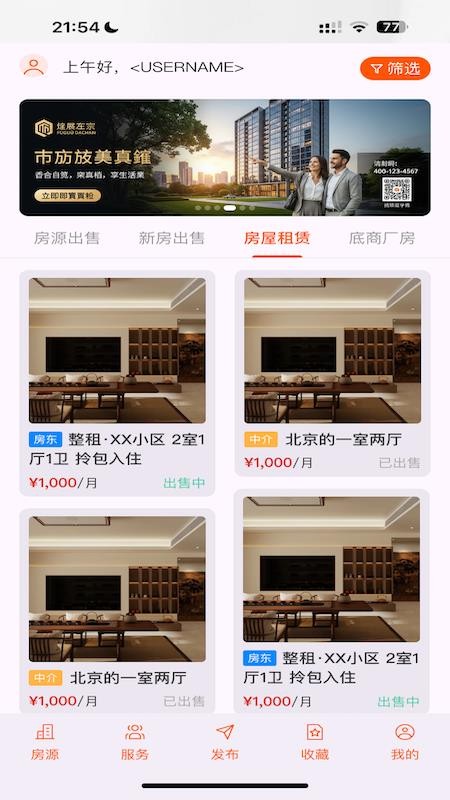 房务精选app官网版是一款提供专业的房源流通交易软件,软件提供了专业的房源出售出租业务,这里可以实时发布房源,轻松上传自己的房源来一键出租,就可有效实现房源出售交易,轻松高效推广房源,增加自己房源的曝光度,以便可以更好的交易。平台中还提供了海量真实的房源信息,更多房源都可筛选,对自己感兴趣的房源可以实时收藏起来,以便可以更好的关注房源,轻松促进房源市场的发展;此外,房务精选最新版还为用户提供了一站式的房源服务,有装修设计、家中、搬家等服务,快捷寻找需要的服务进行下单,轻松享受,有需要的用户就赶紧来本站下载使用!