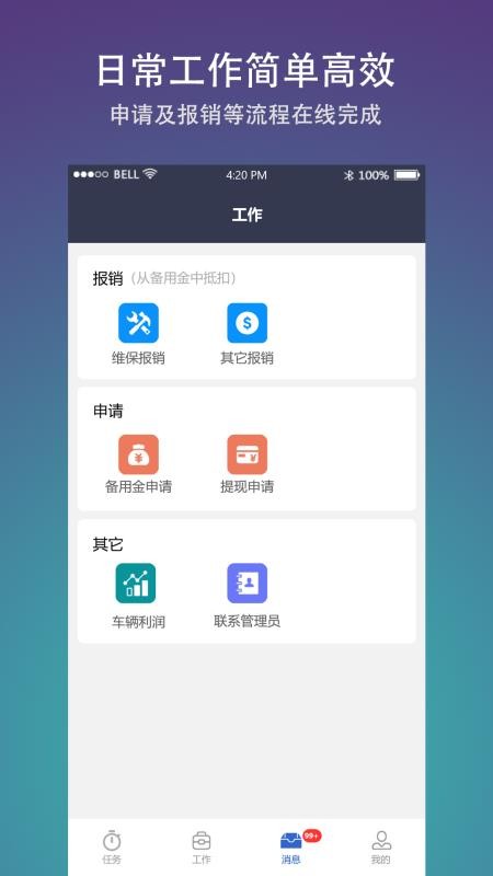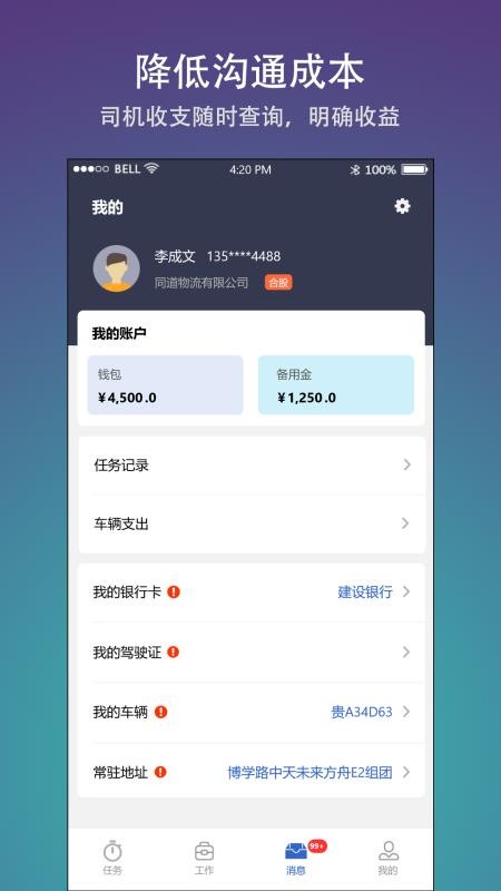 这是一款为物流企业司机专属打造的物流运输工作台,让司机可以随时在这里轻松、便捷的接单工作,大量的运输任务可以提高司机的接单效率,让司机可以随时在这里省心高效的接单工作,还可以将车辆的维保费用快速报销处理,让司机在线处理各项物流运输管理工作更加的省心省力。