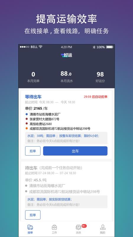 推送了海量的物流运输任务,让司机可以随时在这里接收到海量的运输任务接单工作。