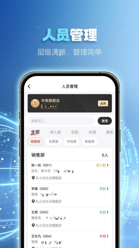 支持用户有效进行人员管理,就可对店铺的人员层级来进行管理,实时管理。