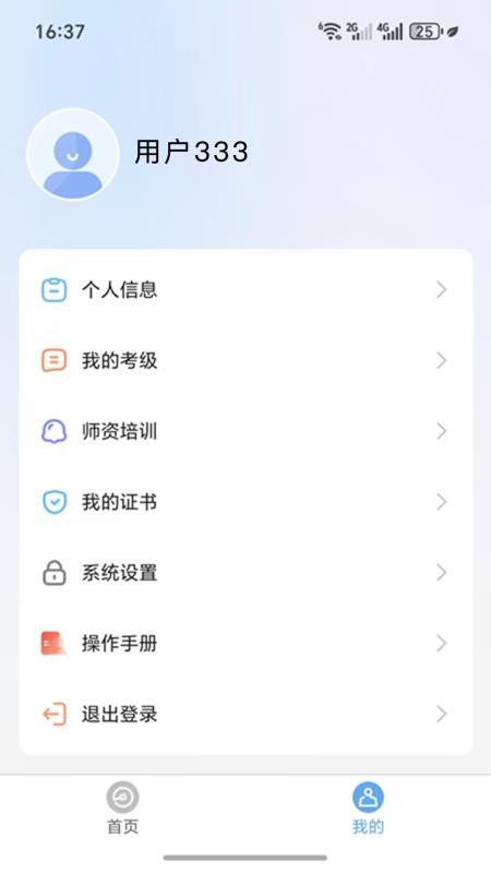 5、在个人中心就能查看个人信息、考级信息、证书和操作手册等信息;