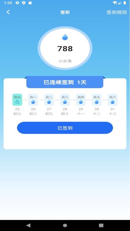 提供了线上的每日签到活动,方便用户坚持每日签到,连续签到就可获取小水滴。