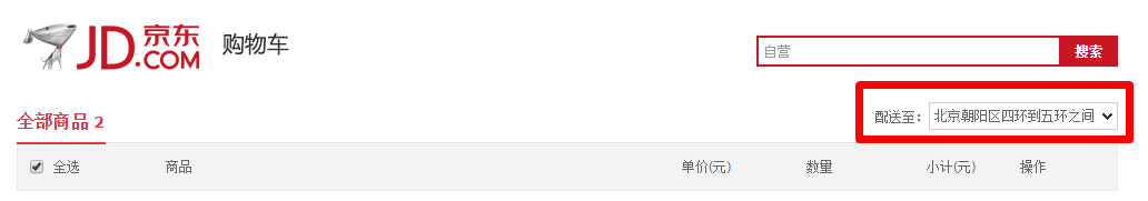 图一:购物车页面中的配送至地区