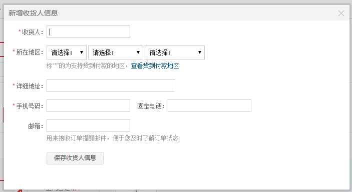 图二:订单结算页设置的地区