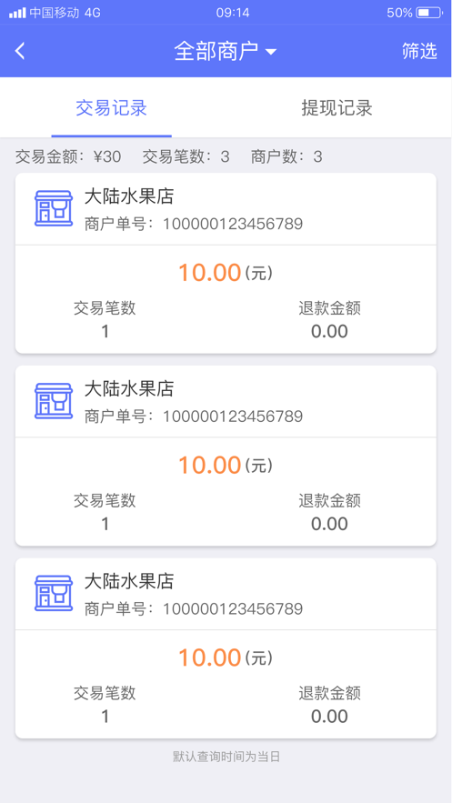 3.交易查询:查询交易订单状态,分析收款情况,每日营收一目了然。