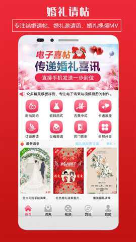 1、在婚礼请柬的帮助下,新人可以在线制作专属于他们的结婚请柬,一键分享到朋友圈或发送给亲朋好友。