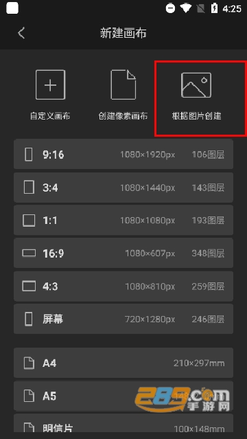 2、新建画布可自定义画布和创建像素画布,还可根据图片创建画布:导入需要临摹的图画,即可自动适配相同像素的画布;
