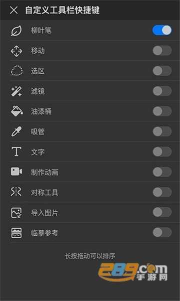 1、用户还可以在软件中进行自定义工具栏的设定,包括柳叶笔、移动选区功能等等,画世界Pro app还支持吸管提取颜色,并且支持在线的文字以及图片的在线添加,十分的快捷方便。
