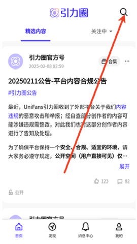 3、用户可以在unifans引力圈的首页直接浏览关注的内容和粉丝,进行分享和互动。