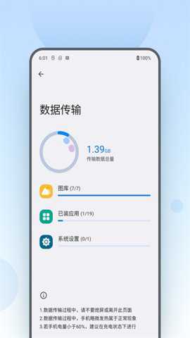 传输数据:按照屏幕提示选择需要迁移的内容(如通讯、照片、应用数据等),确认后自动完成传输,过程数据消耗线且不消耗流量。