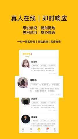 2、平台拥有专业领域的优秀咨询师和倾听者,他们包括情感咨询师、儿童教育专家、总有一个适合并能够帮助您的咨询师。