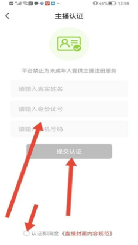 来到主播认证,接下来按指引操作即可。
