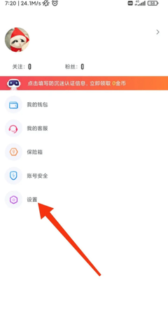 在【我的】页面点击【设置】选项。