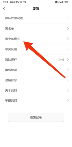 在设置列表中找到并点击【青少年模式】。