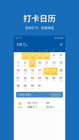 体重app安卓版是一款功能齐全的身体管理工具,它能够帮助用户记录每日的体重数据,并且还可以记录健康状态和记重等信息。用户可以根据这些指数来具体安排以后的饮食和习惯,无论是想要减肥、增肌还是保持体型,这款软件都能够为用户记录下每一次的体重变化,与用户一起共同努力。