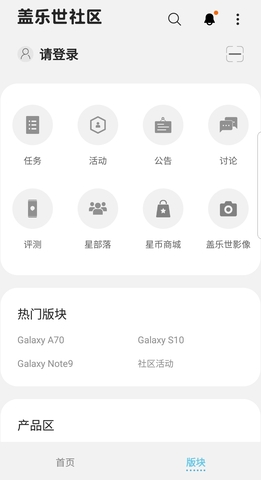 4、在三星社区版块可以查看签到、星币、消息提醒、基本信息、产品认证等。