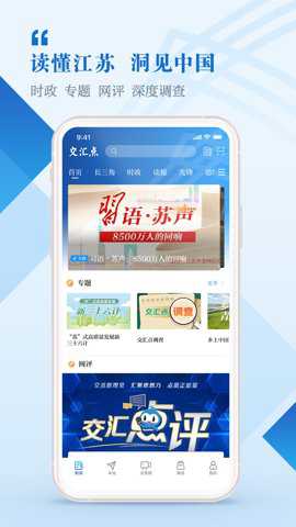 4、交汇点新闻努力用交汇的力量创造价值,成为江苏第一主流新媒体平台。