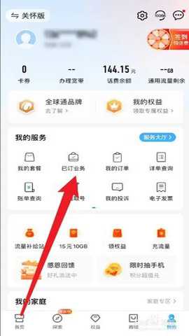 先打开App进入我的, 点击已订业务