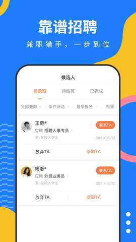 安全可靠:平台审核严格,保障兼职信息的真实性和用户的安全性。