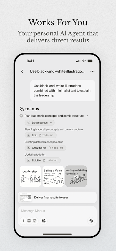 1、ManusAI注重“行动”,可直接落地执行任务,从制作文档到处理生活事务,真正实现解放用户双手。