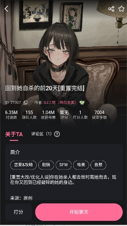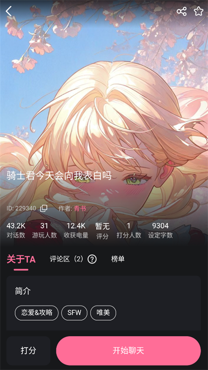 用户们挑选完后,点击“开始聊天”即可与AI角色聊天互动,沉浸式体验虚拟恋爱的乐趣
