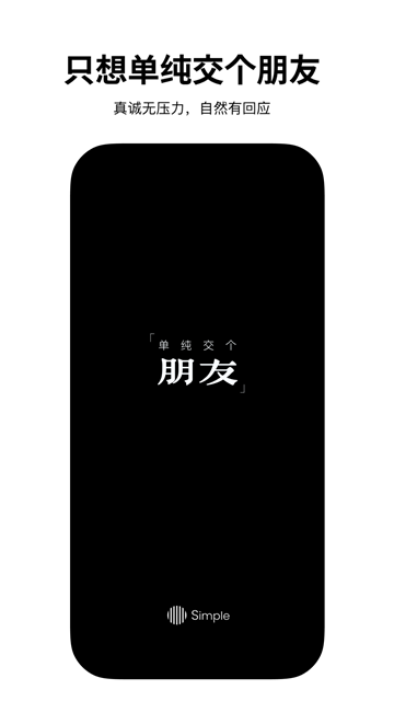 Simple,一个只关乎友情、无关爱情的社交星球。在这里,真正的你才是最重要的。没有真实头像和身份标签,没有任何社交压力。友情是这里的主旋律,没有爱情的复杂和功利,只有真诚与自由。每个人都可以做最真实的自己,随心表达,记录每一个小情绪,和他人建立自然的联系,真诚地认识新朋友,且保持边界感。