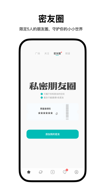 打造私密朋友圈,可添加你的密友,限定五个朋友加入进行社交互动。
