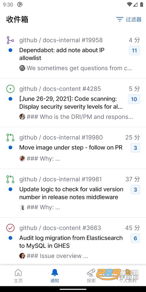 4.对于开发人员来说,GitHub 移动端的功能主要包括:滑动处理消息,问题反馈、回应评论,以及审查和合并拉取代码需求,适配黑暗模式等。