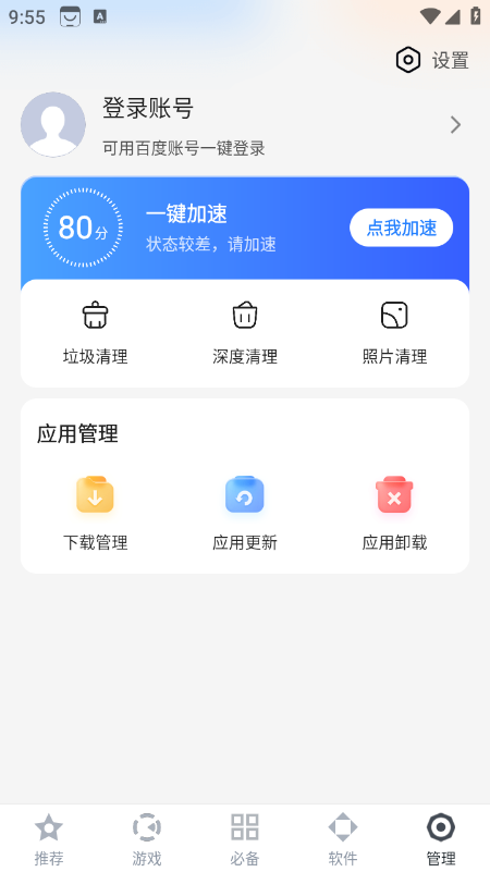 1、整合资源下载与手机管理、系统优化功能,一个软件满足下载-管理-优化全需求;