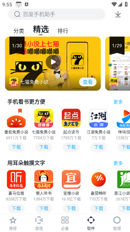 百度手机助手(原百度应用市场)是应用平台与系统管理工具,软件内聚合了海量应用、游戏、壁纸资源的下载渠道,也是兼顾系统优化、文件管理的实用工具,软件界面清新简洁,功能入口直观,无需复杂操作即可实现应用搜索下载、手机资源管理、系统加速优化等需求。