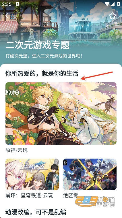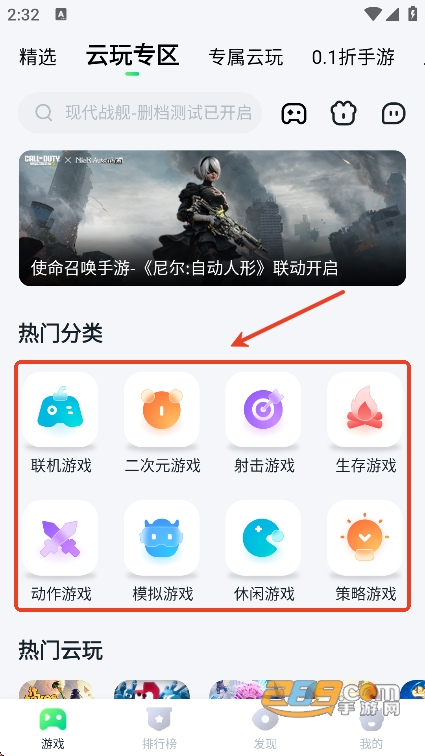 用户们先选择自己喜欢的游戏类型,有联机游戏,二次元游戏,射击游戏等