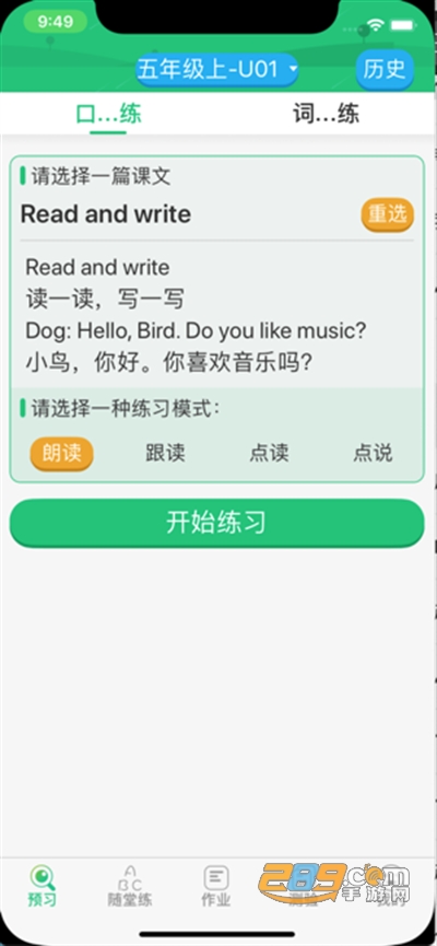 3、跟读练习:提供课文原文语音朗读,可以跟读学习。