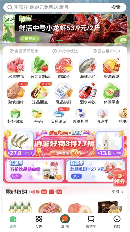 1、商品种类多:提供了超多的商品种类,涵盖了食品、生鲜、日用百货、家居用品、电器等多个领域,满足用户的不同消费需求