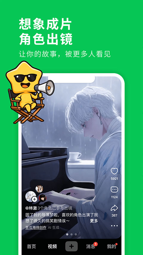让喜欢的角色出镜你的作品,你可以为他创造视频、音乐、漫画、小说。