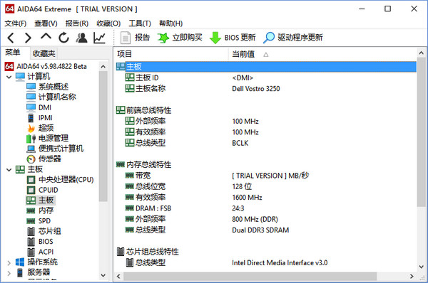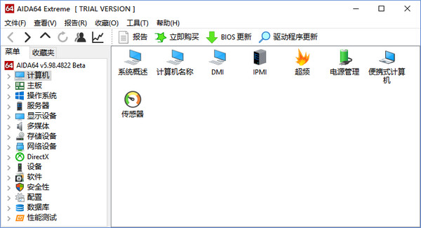 AIDA64中文版全称AIDA64 Extreme Edition,前身是EVEREST,检测硬件和系统信息的专业工具。AIDA64中文版不仅提供了诸如协助超频,硬件侦错,压力测试和传感器监测等多种功能,而且AIDA64中文版还可以对处理器,系统内存和磁盘驱动器的性能进行全面评估。