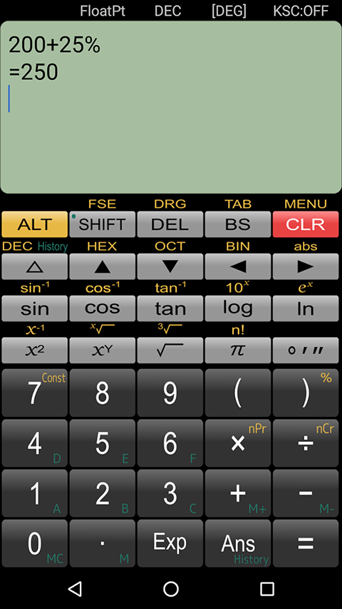panecal计算器最新版是能够显示和校正数学公式的科学计算器应用程序。您可以使用它检查公式,防止输入错误和计算错误。Panecal可以编辑和重新计算过去输入的计算公式、使用可变存储器仅改变特定值进行计算。在屏幕上显示一个光标,您可以点击屏幕或按箭头键迅速移到您想要编辑的地方。同时Panecal允许您通过滑动滚动公式,使用长按复制和粘贴,这使它成为有着直观用户界面的强大灵活的应用程序。感兴趣的欢迎来本站下载吧~~软件特色