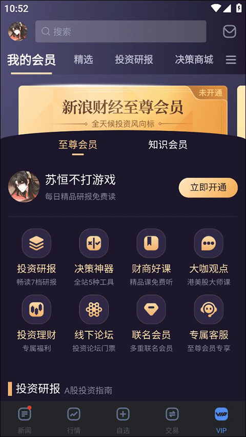 在新浪财经app中除了普通的用户以外,还有一些开启了二种vip服务的用户们,这二种vip服务分别是知识会员和至尊会员,开启了这二种服务的用户除了能够享受普通用户能够使用的全部功能以外,还能享受一些其他的功能。现在让小编带领大家来看看这二种vip服务的不同之处。