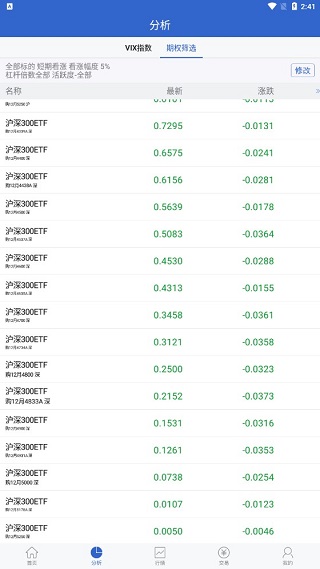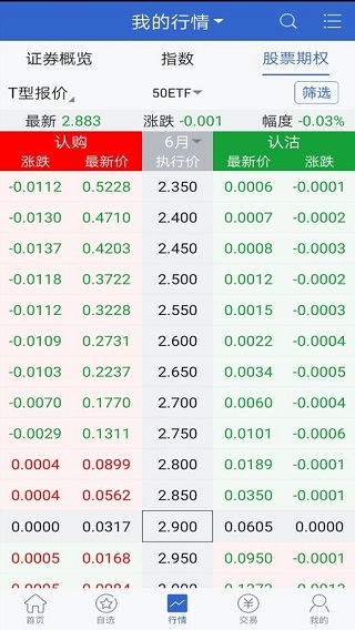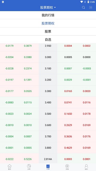 分析功能了解之后,接下来就是行情,在这里你可以通过主上方选择我的行情、股票期权或者股票。这里的数据实时更新,具体情况具体审势。