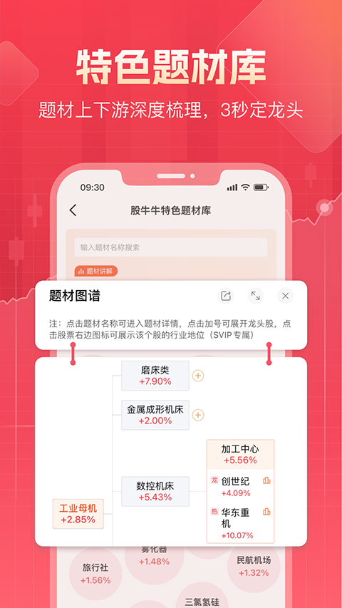 股牛牛股票app是优品投顾公司推出的一款智能炒股软件,app全面梳理热点题材投资逻辑及上下游,结合买卖点指标,帮助用户快速筛选近期热门好股,缩小选股范围,辅助决策。同时软件里还有配套高手操盘体系教学,授人以鱼更授人以渔!而且股牛牛股票app以用户为中心,基于大数据和云服务打造标准化产品、个性化定制、专业研究等服务体系,不断提高用户体验和满意度。有需要的话快来本站下载吧!