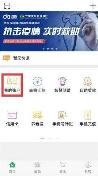 6、如果您前期已成功注册我社掌上银行并已自助下挂账户,但该账户仅有查询功能,您也可自助开通动账权限。登录掌上银行客户端,点击“我的账户”,选择要开通动账权限的账户。