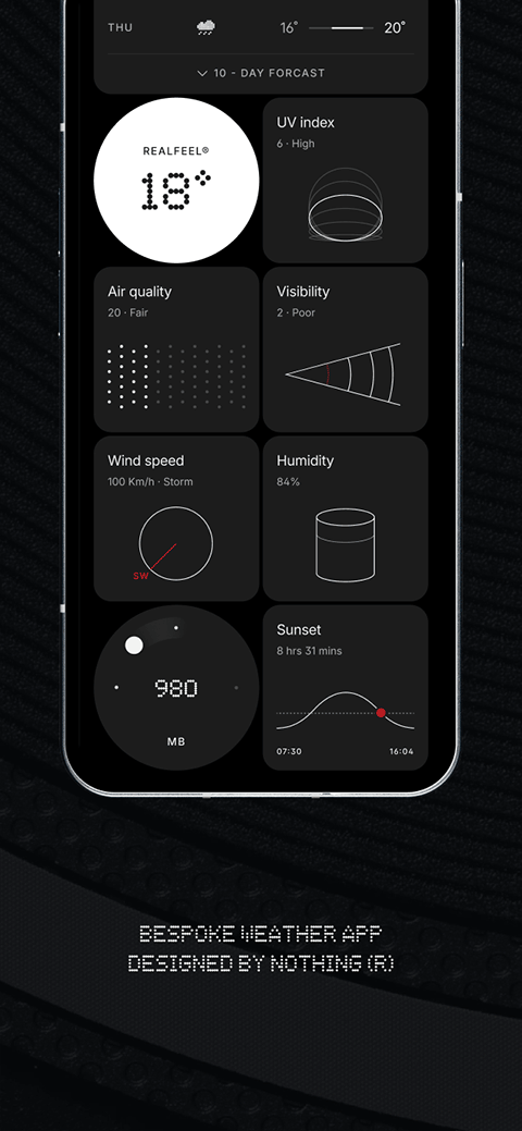2、安装后进入应用就有非常炫酷的天气图标动画,专属nothing phone的标志性视觉体验