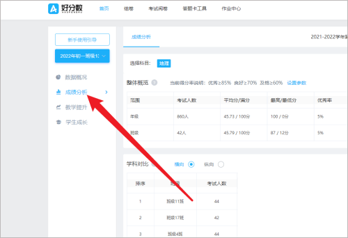 1、进到好分数教师版网页版登录后就可以在这里切换不同的班级。