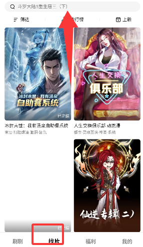 1、在找片界面上方输入自己想看的漫剧;